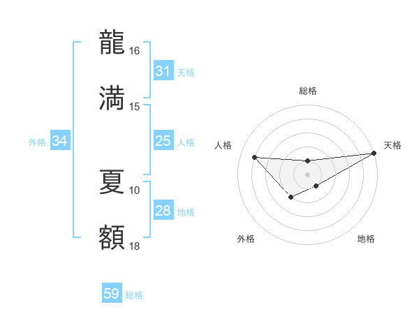 龍満 夏額さんの天格は31画の5点!