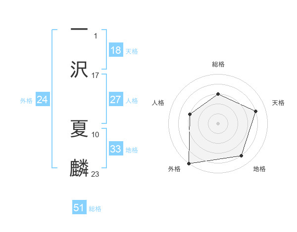 一沢 夏麟さんを姓名の画数から五運を鑑定
