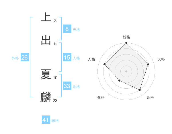 上出 夏麟さんを姓名の画数から五運を鑑定