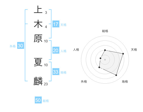 上木原 夏麟さんを姓名の画数から五運を鑑定