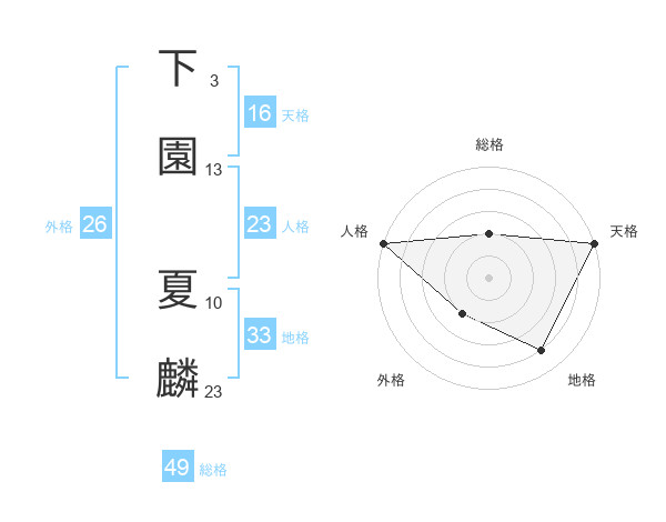 下園 夏麟さんを姓名の画数から五運を鑑定
