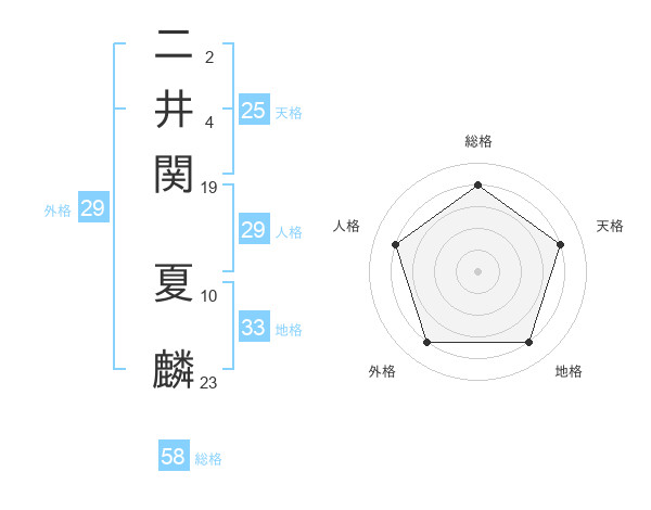 二井関 夏麟さんを姓名の画数から五運を鑑定