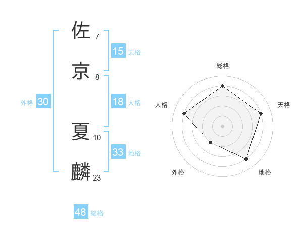 佐京 夏麟さんを姓名の画数から五運を鑑定