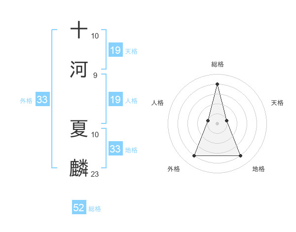 十河 夏麟さんの総格は52画の4点!