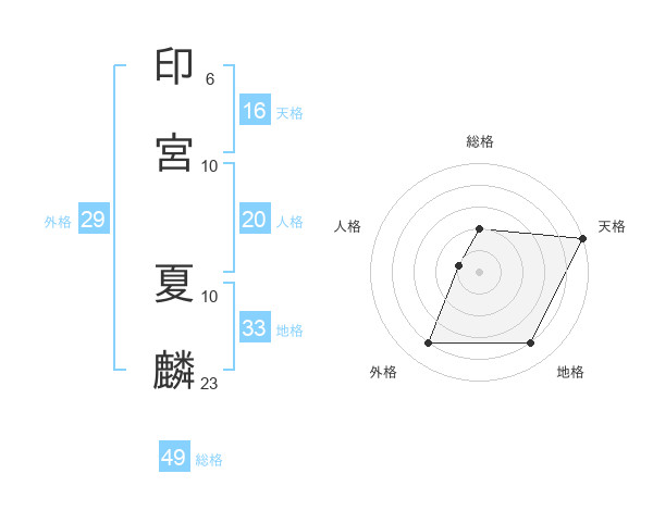 印宮 夏麟さんの総格は49画の2点!