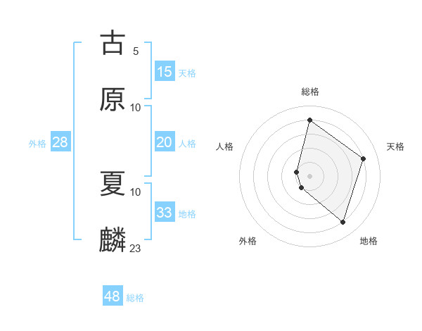 古原 夏麟さんの天格は15画の4点!