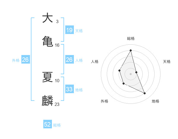 大亀 夏麟さんの総格は52画の4点!