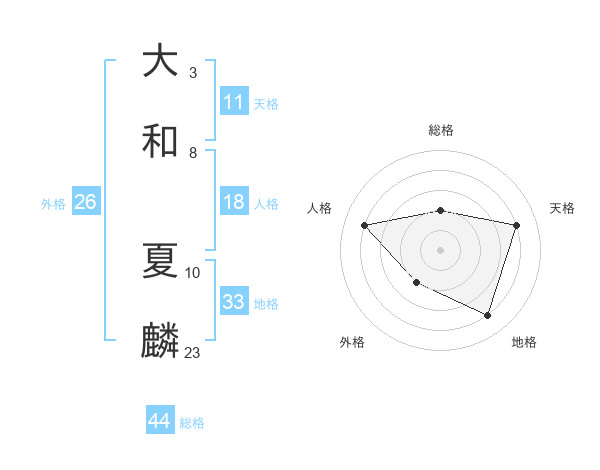 大和 夏麟さんを姓名の画数から五運を鑑定