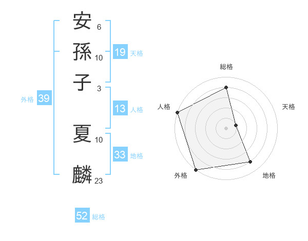 安孫子 夏麟さんの総格は52画の4点!
