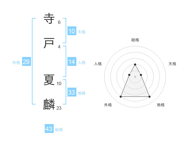 寺戸 夏麟さんの総格は43画の2点!