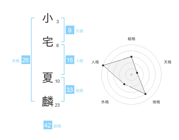 小宅 夏麟さんの総格は42画の3点!