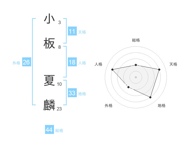 小板 夏麟さんを姓名の画数から五運を鑑定