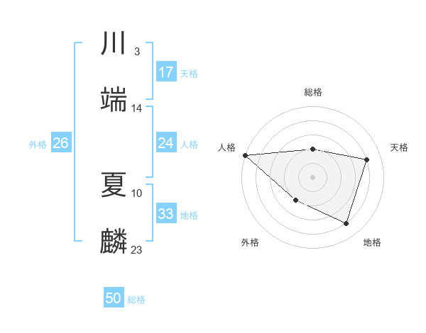 川端 夏麟さんを姓名の画数から五運を鑑定