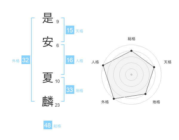 是安 夏麟さんの外格は32画の5点!