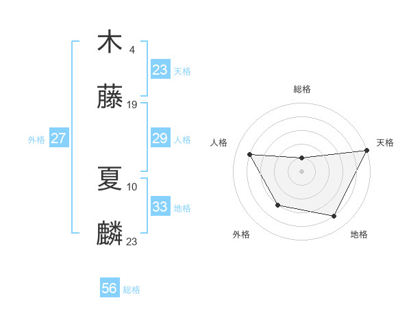 木藤 夏麟さんの天格は23画の5点!