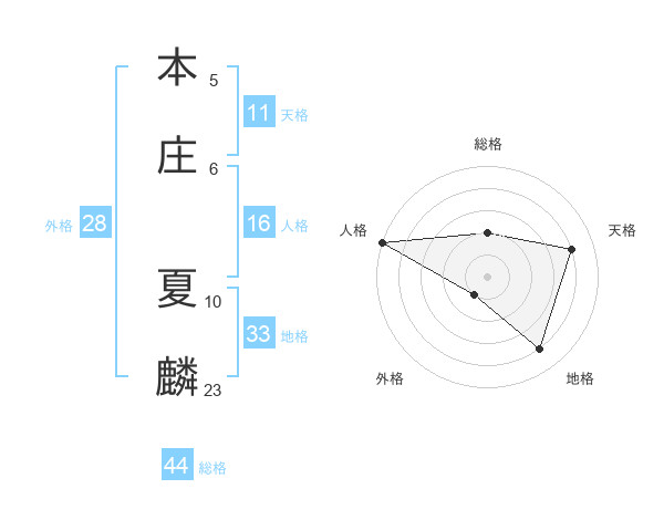 本庄 夏麟さんを姓名の画数から五運を鑑定