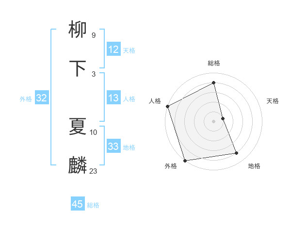 柳下 夏麟さんの総格は45画の4点!