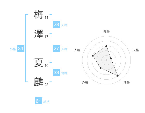 梅澤 夏麟さんの総格は61画の3点!