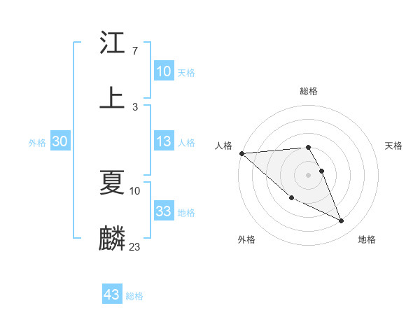 江上 夏麟さんの総格は43画の2点!