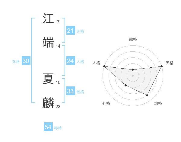 江端 夏麟さんの天格は21画の5点!