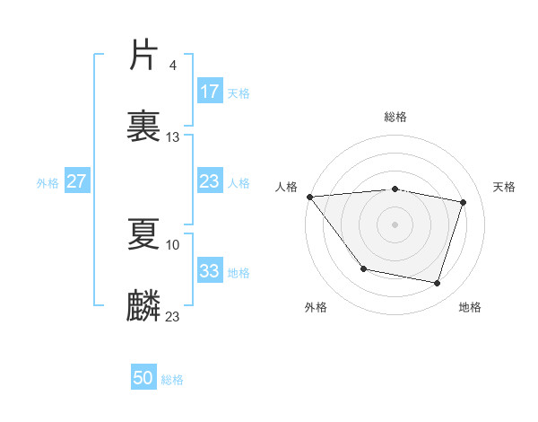 片裏 夏麟さんの総格は50画の2点!