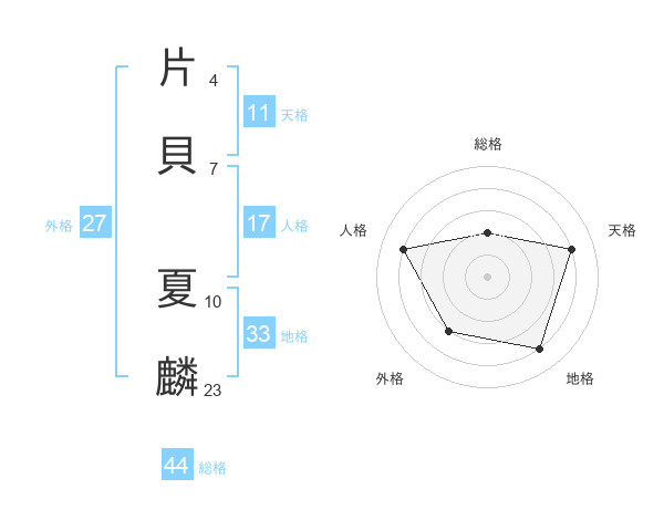 片貝 夏麟さんの総格は44画の2点!