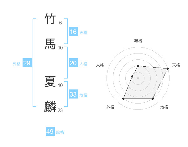 竹馬 夏麟さんを姓名の画数から五運を鑑定