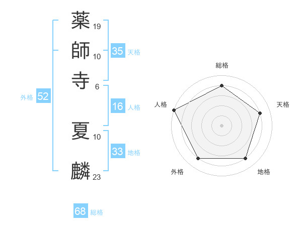 薬師寺 夏麟さんの外格は52画の4点!