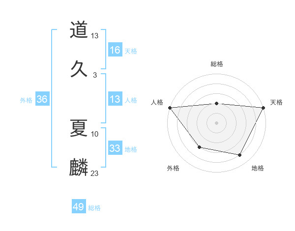 道久 夏麟さんの天格は16画の5点!