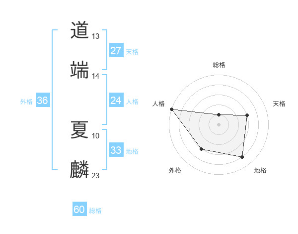 道端 夏麟さんの総格は60画の1点!