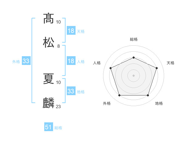 髙松 夏麟さんの総格は51画の3点!