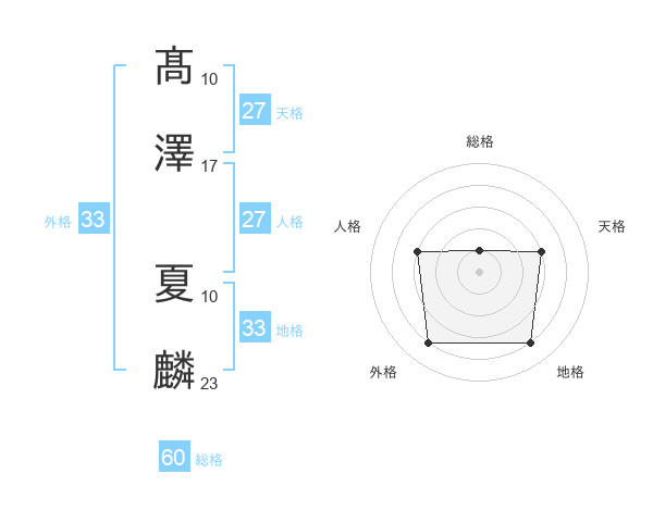 髙澤 夏麟さんの総格は60画の1点!