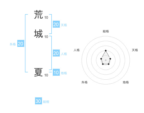 荒城 夏さんの総格は30画の2点!