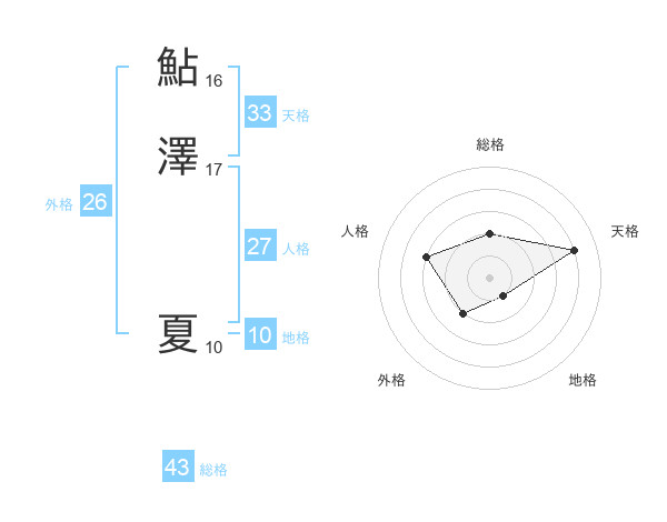 鮎澤 夏さんの総格は43画の2点!