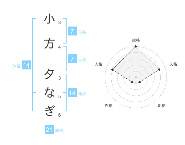 小方 夕なぎさんを姓名の画数から五運を鑑定