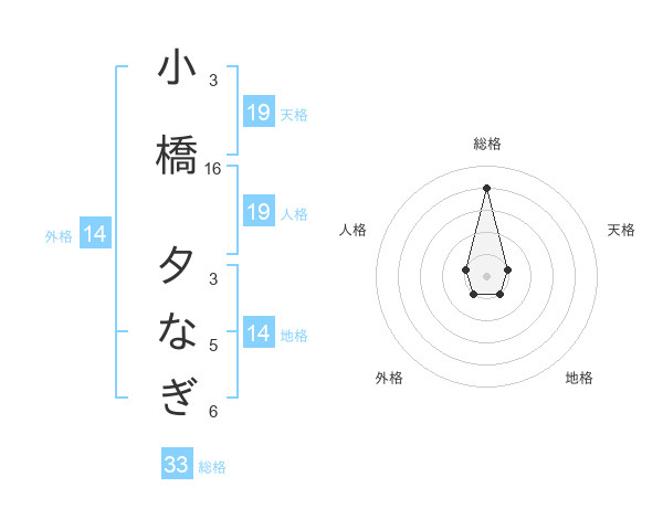 小橋 夕なぎさんを姓名の画数から五運を鑑定