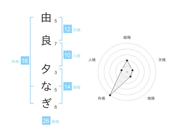 由良 夕なぎさんの外格は16画の5点!