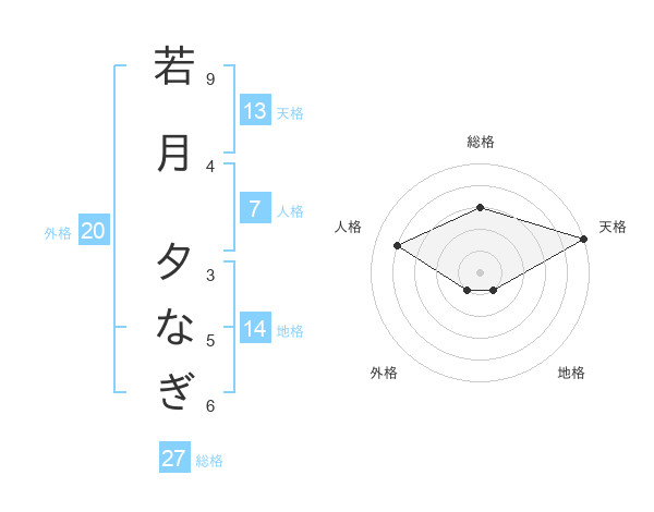 若月 夕なぎさんを姓名の画数から五運を鑑定