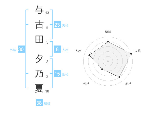与古田 夕乃夏さんの天格は23画の5点!