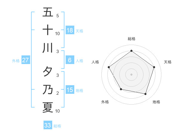 五十川 夕乃夏さんを姓名の画数から五運を鑑定