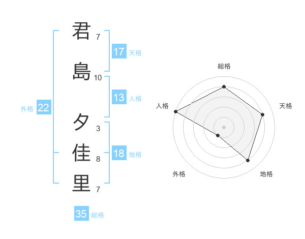 君島 夕佳里さんの総格は35画の4点!