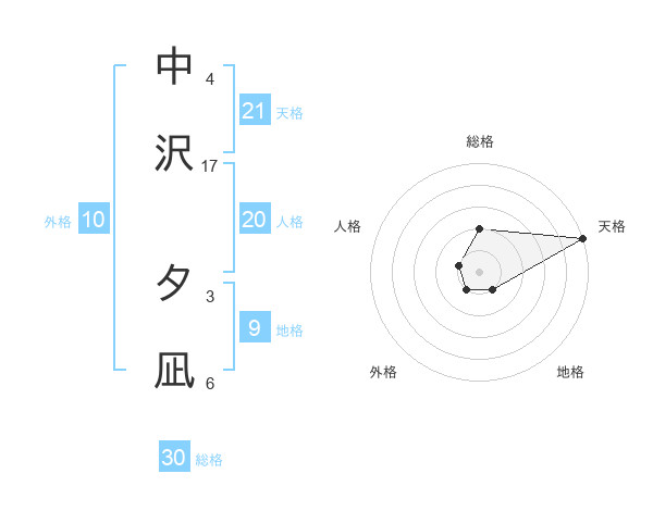 中沢 夕凪さんの天格は21画の5点!