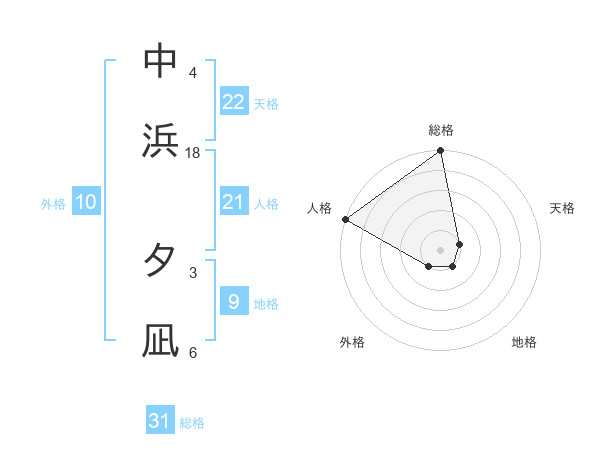中浜 夕凪さんの総格は31画の5点!