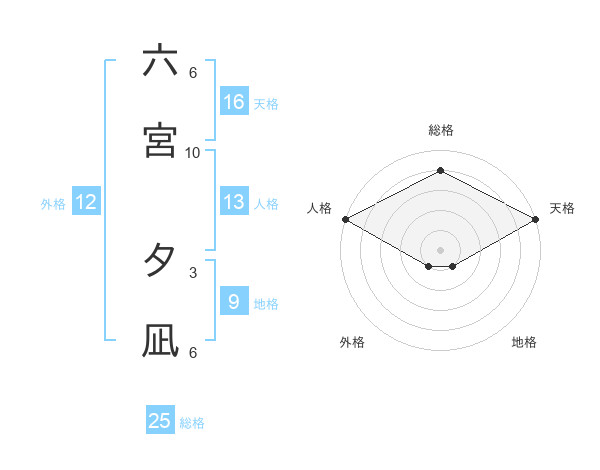 六宮 夕凪さんの天格は16画の5点!