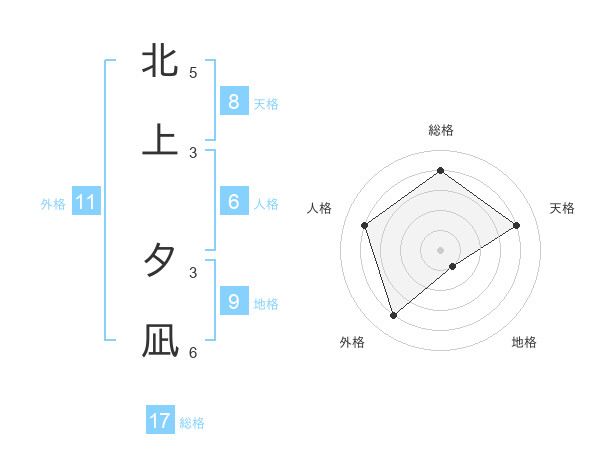 北上 夕凪さんを姓名の画数から五運を鑑定