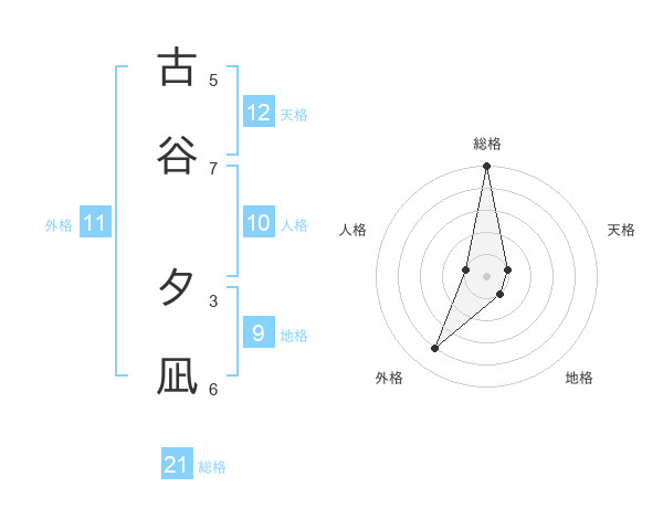 古谷 夕凪さんを姓名の画数から五運を鑑定