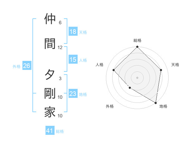 仲間 夕剛家さんを姓名の画数から五運を鑑定