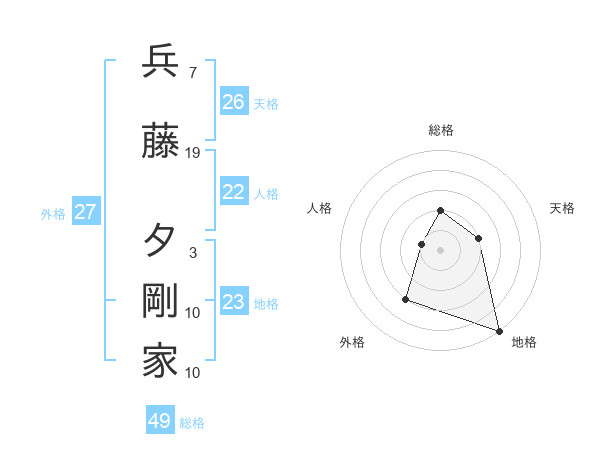 兵藤 夕剛家さんを姓名の画数から五運を鑑定