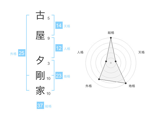 古屋 夕剛家さんを姓名の画数から五運を鑑定
