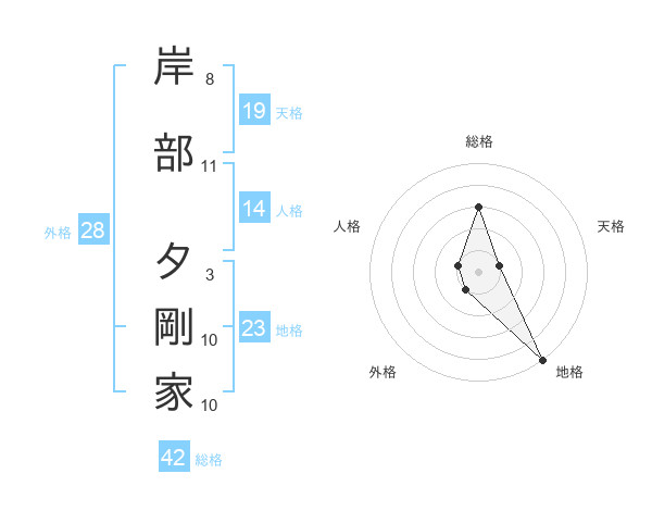 岸部 夕剛家さんを姓名の画数から五運を鑑定
